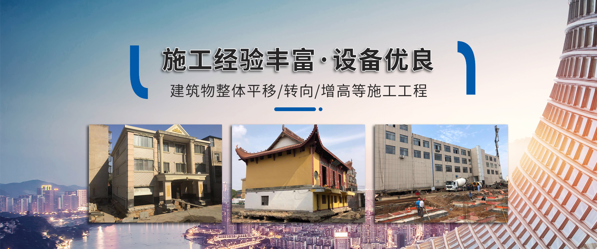 有多年的改造經(jīng)驗(yàn),技術(shù)力量雄厚,專(zhuān)注建筑物移位等施工工程。